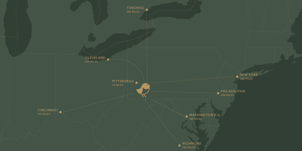 About 5.5 hours from central Kentucky, Nemacolin is a manageable drive. Take Interstate 64 east to Charleston WV, then Interstate 79 North. Nemacolin is just over the West Virginia/ Pennsylvania line.